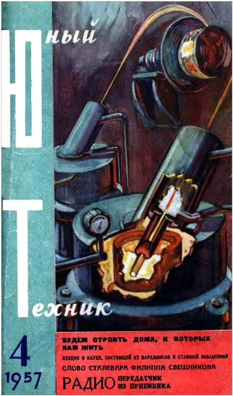 ЮТ. 1957 год, № 4. Технический журнал Юный Техник уже с давних лет знакомит юных изобретателей с новшествами техники и инженерной мысли, техническими открытиями и инновационными решениями, предлагает схемы для моделирования и проектирования, а также проводит конкурсы с поощрительными призами.