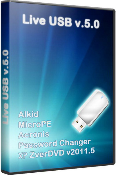 Live USB v.5.0 - мультизагрузочная флешка от yuric21, включившая в себя Alkid, MicroPE, Acronis, Password Changer, ХР и WPI (урезанный) а также сборку ZverDVD v.2011.5